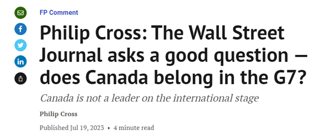 《华尔街日报》得出结论,如果加拿大不想扮演那个角色,那么七国集团应该考虑寻找替代者。