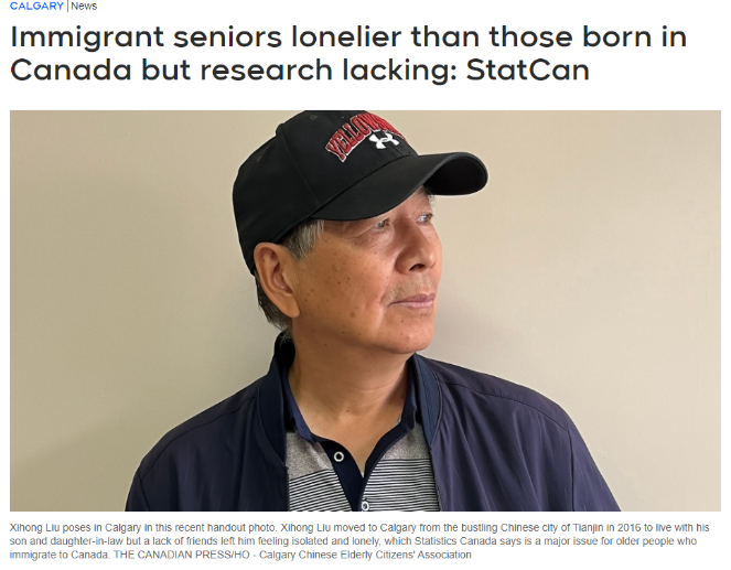 加拿大统计局周三公布的一项调查结果显示,成年后移民到加拿大的老年人,比本地出生的人更容易感到孤独。