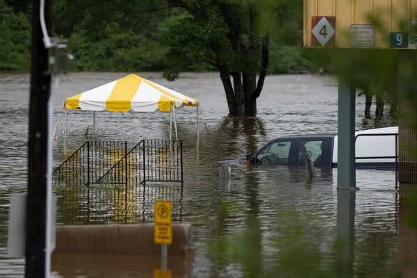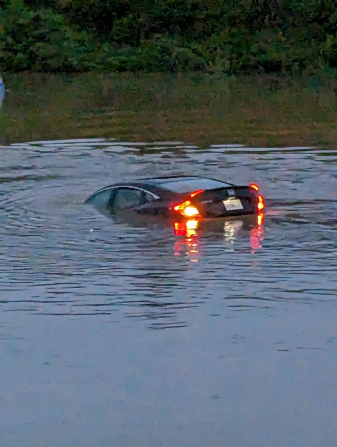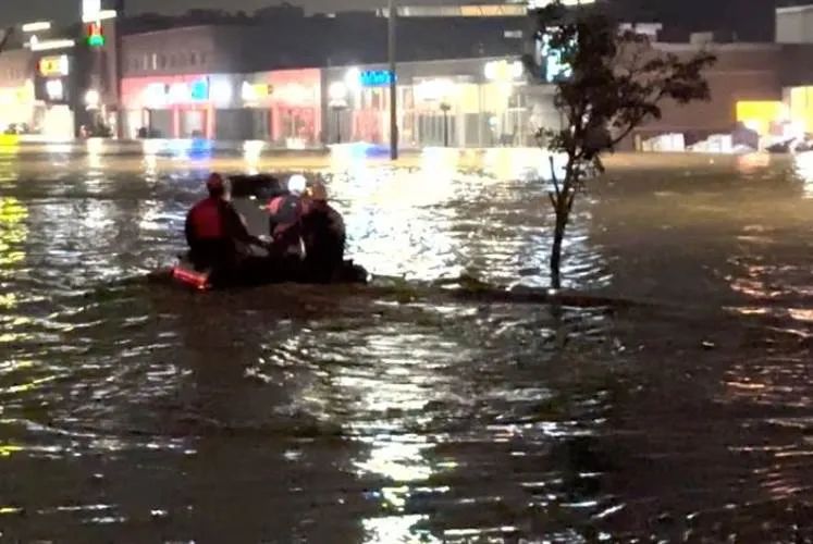他们乘坐的汽车被水淹没。目前搜救工作正在展开!