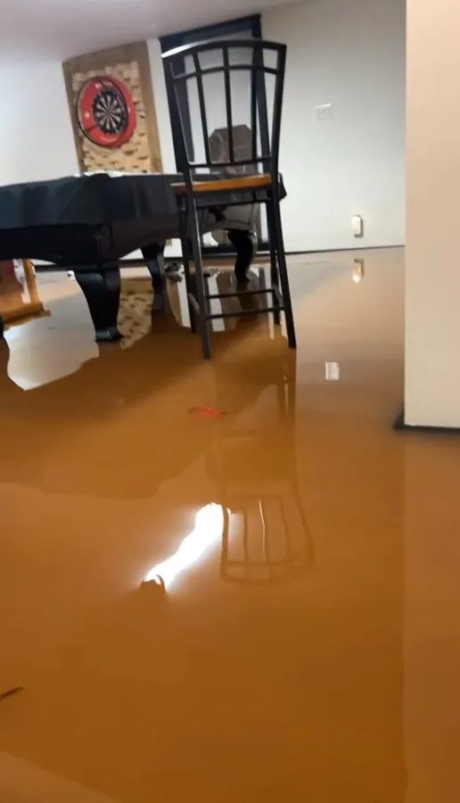 有的居民家里地下室进了水,浑黄的水十分可恶