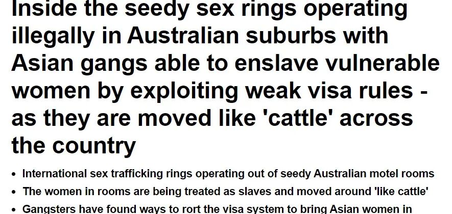 英国《每日邮报》报道称,尤其是在澳洲这种签证方面规章制度存在漏洞的国家,许多不法分子利用签证漏洞,诱骗亚洲女性来务工,将她们骗到妓院里提供性服务。 这些女子大多数是以旅游签证或是学签入境,听说当地提供包吃住、包机票的工作,可一落地就被人没收护照,送到不见天日的地下场所囚禁。 受害者大多不会说英语,也不懂当地的法律法规,不知道维权。