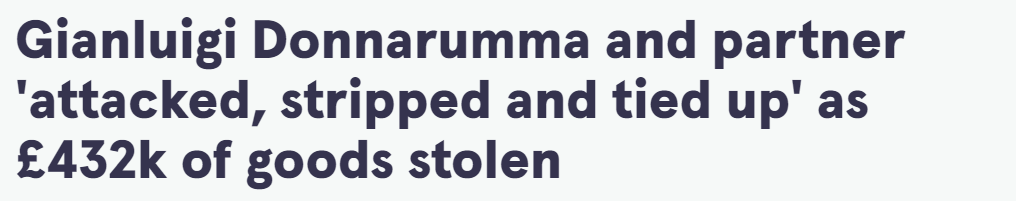 21日凌晨,球星多纳鲁马和女友在巴黎家中遭遇劫匪暴力入室抢劫,多纳鲁马惨遭暴力殴打,血溅当场,后又被枪口顶头,和女友双双被捆绑。