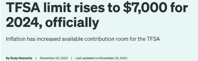 2024年TFSA供款额度涨了