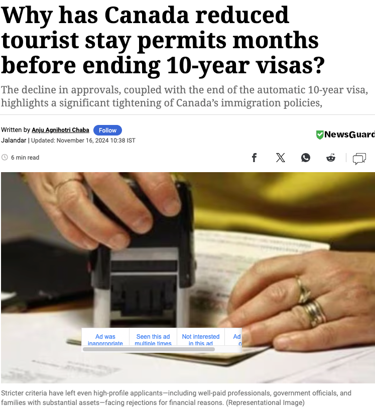印度人慌了!加拿大3大狠招打击!签证率80%狂跌至20%,银行夫妇探儿子也拒