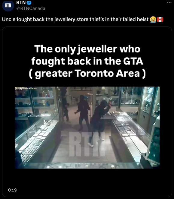 舒适感拉满!3黑衣人持锤爆砸大多伦多珠宝店,被店主大叔拿扫帚杆抽跑了!全网怒赞!