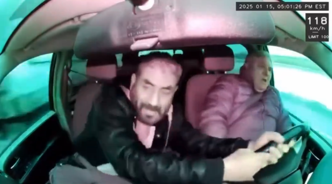 当时,这辆出租车正以每小时118公里的速度平稳行驶,车内气氛看似平静:司机专注驾驶,一位男乘客坐在副驾驶位置,后座则坐着一位戴头巾的女士和几名小孩。然而,就在这看似平常的一刻,一场险情突然爆发。没有任何预兆,也没有任何征兆,副驾驶座位上的男乘客突然伸出双手,一把抓住方向盘,向右猛拽。“你TM在干什么?”司机惊慌失措地大喊,同时奋力想要夺回方向盘的控制权。在如此高的速度之下猛打方向,车辆非常容易失控,一旦翻车那必定是车毁人亡。可意想不到的是,这仅仅是噩梦的开始。在短暂松手之后,这名男子再次猛地抓住方向盘,执意要将车辆往右侧行驶的大货车方向撞去。幸好当时车内外都有摄像头,视频清晰记录下了这惊心动魄的一幕:汽车剧烈晃动,碎片四处飞溅,后座传来此起彼伏的尖叫声。所幸这位经验丰富的司机在千钧一发之际,成功将车辆稳住并安全停靠在路边。然而,这名肇事男子在车辆停稳后,竟然面无表情地迅速解开安全带,恶狠狠地看了司机一眼,然后一言不发地下车离开,仿佛什么都没有发生过一样。这名男子下车时的眼神毫无悔意,甚至还充满愤恨,简直令人后背发凉。随后,后座的女乘客也下了车,出人意料的是,她不但没有指责那名危险的男乘客,反而似乎在质问司机。整个过程中,后座的几个孩子都处于极度惊恐的状态,这无疑给他们幼小的心灵留下了难以磨灭的阴影。这段视频在社交媒体平台上立马就炸了,短短时间内就获得了超过200万的点击量,引发了网友们的激烈讨论。有人猜测这可能是一起蓄意的保险诈骗,也有人担忧这或许是一次有预谋的危险行为。更有网友直言不讳地表示:“这简直就是一起恐怖主义行为!应该严惩不贷!”安大略省警方发言人随后向媒体透露,这名45岁的纽芬兰男子已经被警方逮捕,目前正面临多项严重指控,包括危险驾驶、危及生命的恶作剧以及故意损坏财产等罪名。社交媒体上的帖子称这辆车为Uber,但警方明确表示这是辆出租车。警方表示,目前仍在深入调查此事,以查明该男子的具体作案动机。被告现已被拘留,正在等待保释听证会的结果。值得庆幸的是,在这起危险事件中没有造成任何人员伤亡,也没有引发连环交通事故。但这一事件无疑给社会敲响了警钟。一些人认为事件的发生反映了当前社会治安的严峻问题,还有人将矛头指向移民政策,呼吁加强对犯罪分子的惩治。有网友无奈地表示:“加拿大到底怎么了?现在连坐车都要提心吊胆了。”看来如今没个行车记录仪,都不敢在加拿大开车了。。。