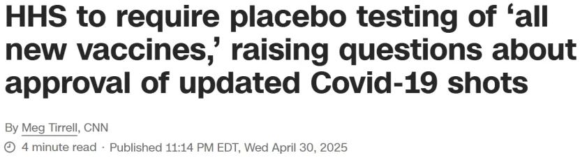 上月底,美国卫生与公众服务部(HHS)发布声明称,未来所有新疫苗在获批前必须进行安慰剂对照临床试验,以验证其安全性。