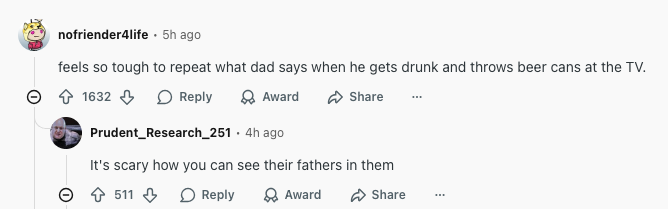 “真是“男子汉”啊,复述爸爸喝醉后扔啤酒罐砸电视时说的话。”