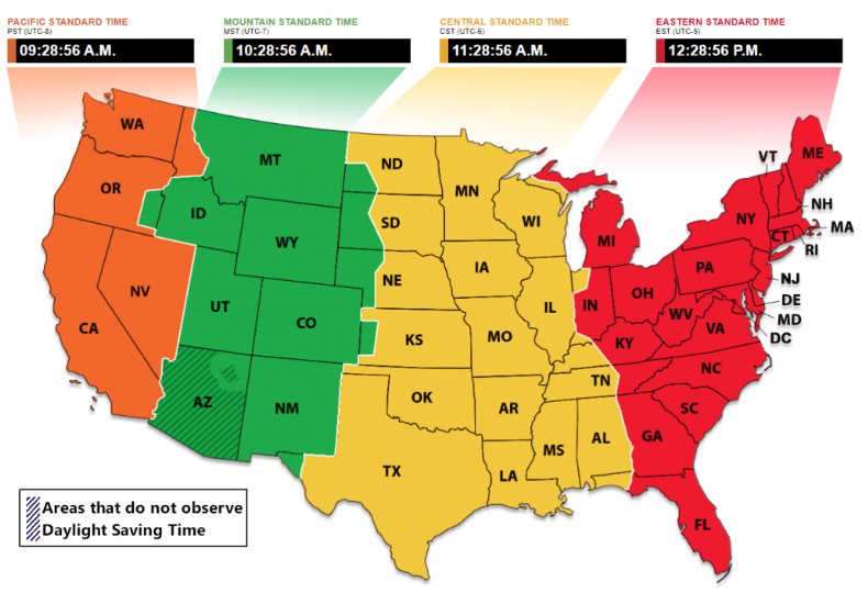 根据美国全国州议会会议(NCSL)的统计,目前只有亚利桑那州和夏威夷州 全年使用标准时间,不实行夏令时;另有19个州 已通过法案,表示如果国会批准,将实行全年夏令时制。