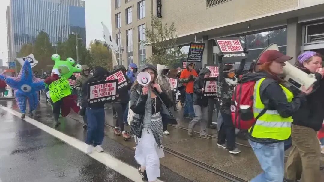 | 波特兰市再次出现游行和集会活动,多支社区团体于10月25日(周六)在风雨天气中集结,反对移民及海关执法局(ICE)在当地的执法行动,以及联邦政府推动派遣国民警卫队进入该市的计划。 组织者表示,此次行动是对近期联邦执法人员“强度升级”的回应,呼吁地方政府撤销ICE在波特兰的运营许可。抗议活动从公园启程,直抵联邦设施 集会于下午1点在波特兰南区的伊丽莎白·卡鲁瑟斯公园(Elizabeth Caruthers Park)正式开始,参与者随后徒步前往ICE位于南波特兰的设施。 他们沿途高呼口号,并举起标语,表达对联邦执法机构使用人群管制武器的不满。 组织者称,近期在该设施附近的抗议活动中,联邦执法人员动用了催泪瓦斯和胡椒弹等驱散工具,对象包含和平集会人群,这一行为引发社区担忧。 一名组织方代表在新闻稿中表示,这种做法“加剧了社区紧张”。主要组织方提出明确诉求 本次活动由波特兰地方反驱逐联盟“PDX Contra Las Deportaciones”(简称PDXCD)及多家社区团体联合发起。组织者提出以下诉求: 呼吁撤销ICE在波特兰的运营许可证;要求停止对抗议者使用强制性执法手段;反对部署国民警卫队进入该市。