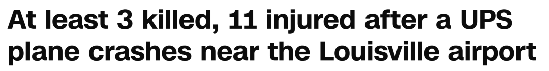 UPS公司发布声明中确认:“我们极度悲痛地确认UPS 2976航班在起飞后不久坠毁。目前正在核实伤亡情况,并积极配合调查。”