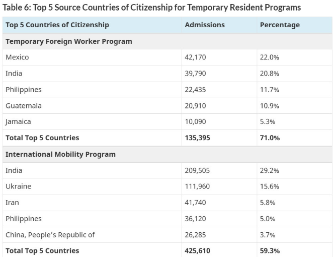 2024年临时居民的5大来源国: