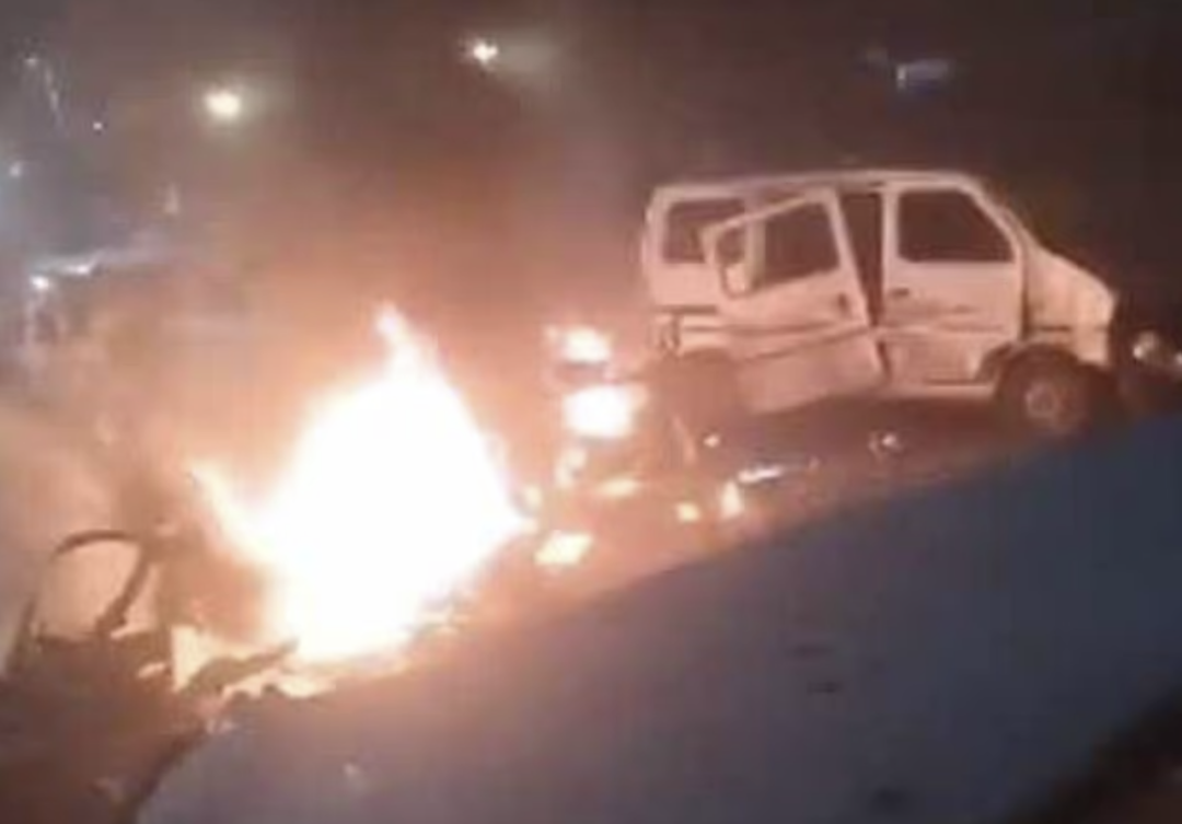 巨响过后,至少6辆汽车和3辆机动三轮车当场起火,火舌冲天!