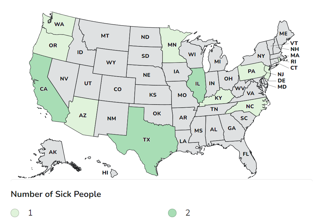 发病时间集中在8月9日至11月10日,波及从加州到纽约的12个州。