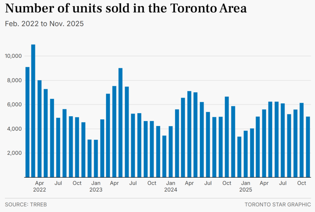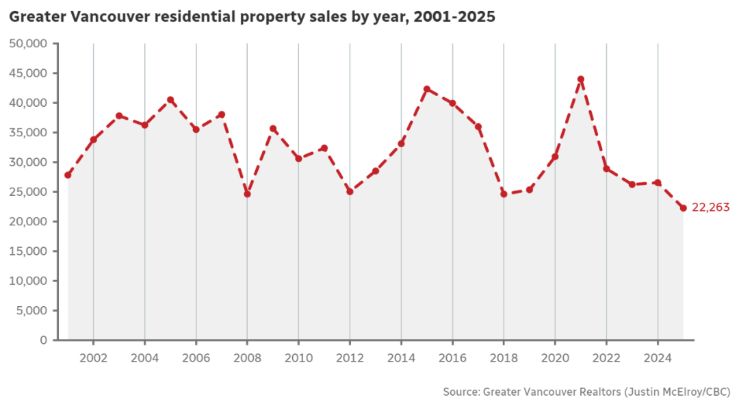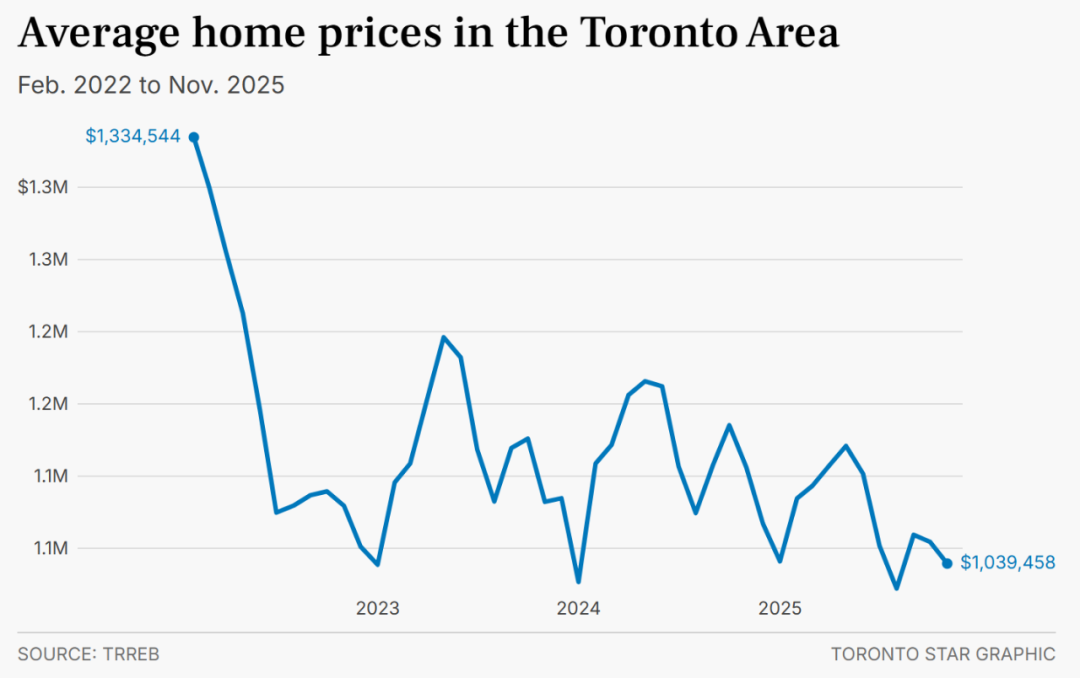 加拿大今年的房市表现,用“惨淡”来形容都显得有些保守了。 大温地区今年预计将创下25年来最低成交纪录,而多伦多的情况更加惨烈,房价已连续10个月下跌,较2022年峰值暴跌22%。 先来看看大温地区的情况。 根据大温地产经纪人协会(Greater Vancouver Realtors)12月2日公布的最新数据,11月共售出1,846套住宅物业,同比下降15.4%,比10年季节性平均水平低了20.6%。 预计到2025年底,大温地区全年只能卖出22,263套房屋,将打破本世纪以来的最低年成交量纪录。 此前的最低纪录诞生在2018年,当时的年成交量为24,619套,而今年,显然更加惨烈。 更严峻的是,大温地区的房屋库存多到卖不动。11月新挂牌房源为3,674套,虽然比去年略少1.4%,但仍比10年平均水平高出3.1%。 整体库存更是同比增加14.4%,达到15,149套,比十年季节平均高出36.3%。 即使市场上房子随便挑,但还是卖不出去,卖家面临巨大的降价压力。 从价格来看,大温地区11月的综合基准价格为112.37万加元,同比下降3.9%,较10月下降0.3%。 独立屋基准价格为190.06万加元,同比下降4.3%。公寓基准价格为71.43万加元,同比下降5.2%。城市屋基准价格为106.56万加元,同比下降4.4%。 与2022年3月的高峰期相比,部分地区的跌幅更加触目惊心。 菲沙河谷地区11月的房屋平均售价为145万加元,比2022年的高峰期足足下降了19%。公寓平均售价为50.76万加元,也同期下降了15%。 大温楼市的低迷并非个案,作为加拿大最大的房地产市场,多伦多的情况更加严峻。 多伦多地区房地产委员会今天发布的11月报告显示,房屋销量同比暴跌15.8%,价格下跌6.4%至103万加元。 这已是多伦多地区房价连续第10个月下滑,相比2022年2月的历史高点,所有房型平均价格已经蒸发了22%。 多伦多的公寓市场情况更糟,已经出现了部分专家所说的“崩盘”现象,销量跌幅达到21.8%,价格自2022年2月峰值以来累计下跌15%。 公寓市场投资者撤离,首次购房者嫌单位太小也不上车,销量跌、价格跌、预期更跌,公寓沦为多伦多房市最弱的一环。 为什么加拿大楼市今年会这么惨?原因其实并不复杂。 Central 1 Credit Union首席经济学家布赖恩·余(Bryan Yu)分析,这在很大程度上反映了住房负担能力的现状、经济缺乏确定性。抵押贷款利率虽然比前两年好一点,但还是偏高。 多伦多地区房地产委员会首席信息官杰森·默瑟(Jason Mercer)也表示,经济不确定性持续影响着买卖双方的信心。 加拿大第三季度经济虽然有亮点,但关税影响持续,最近阿尔戈马钢铁集团还一次性向1000名员工发出裁员通知,更让市场不敢轻举妄动。 目前,加拿大央行已在10月将关键利率下调至2.25%。经济学家普遍认为,利率短期内应该不会再降,未来市场要回暖,关键得看信心,而不是利率。 但现在,市场上最缺的就是信心,大温和多伦多的潜在购房者仍然持观望态度,等待更积极的经济消息。 买家对经济和就业没底气,加拿大楼市的复苏之路似乎还很漫长。