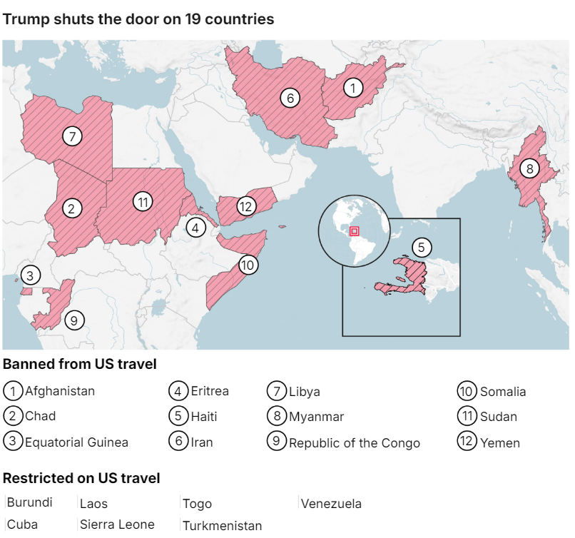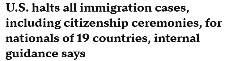 美国移民大冻结:暂停所有庇护、暂停19国移民申请、公民身份重审!旅游禁令将扩大到30国