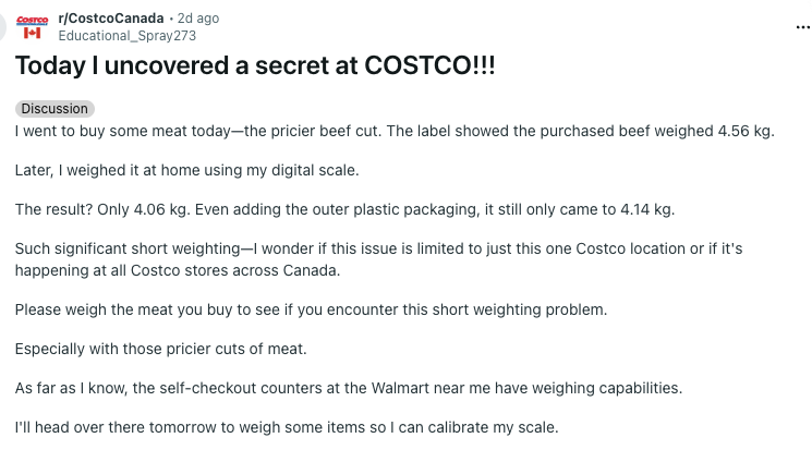 炸锅!加拿大Costco被曝“缺斤短两”!华人买牛肉回家一称少1斤!网友“不止一家”!