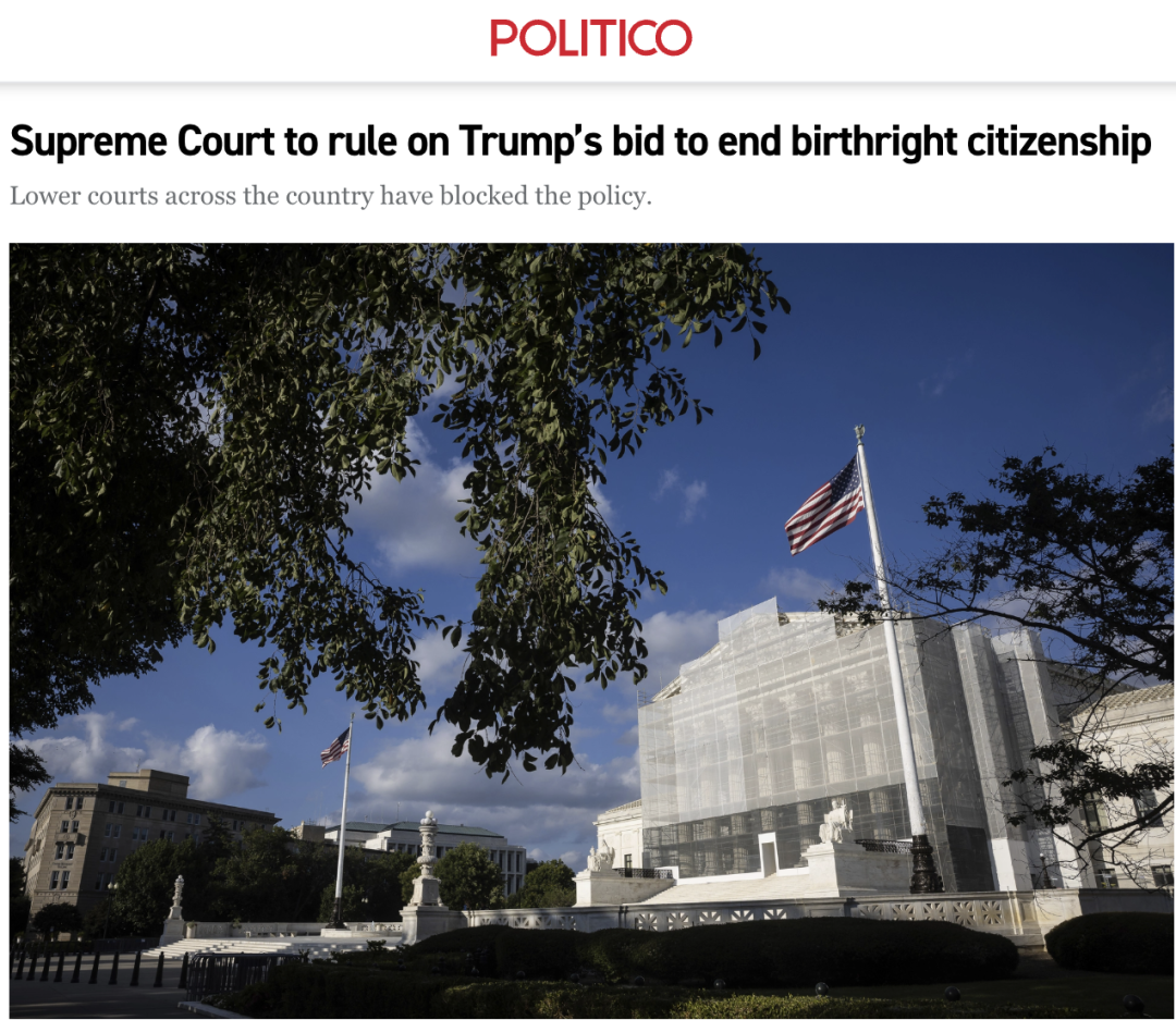 2025年12月5日,最高法院终于宣布,将于2026年正式审理——特朗普政府行政命令废除“出生公民权”的宪法合法性。
