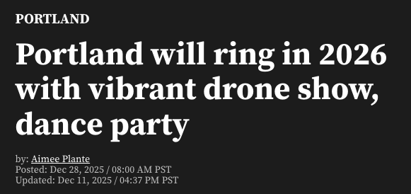 [波特兰新闻]波特兰「跨年夜倒数」无人机秀+灯光秀+劲歌热舞迎接2026新年!