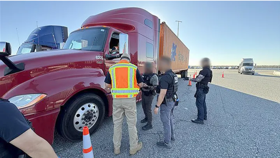 美国移民和海关执法局(ICE)近日在加州高速公路上开展“公路哨兵行动”(Operation Highway Sentinel),逮捕了一百多名非法移民卡车司机。