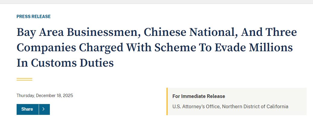 最近一则联邦起诉案,在不少华人圈里悄悄传开。加州联邦检察官办公室公布一起涉及反倾销税与原产地申报的刑事案件,引发外界关注。联邦大陪审团起诉三名华人及三家公司,指控其合谋逃避针对中国产品征收的反倾销税、反补贴税及相关关税,涉案金额巨大。根据检方发布的新闻稿,美国海关与边境保护局(CBP)已就此案向相关方发出约2亿2250万美元的“预处罚通知”(pre-penalty notice),而被指控逃避的关税金额,超过1亿900万美元。 起诉书显示,被告包括63岁的潘信勉(Xin Mian Pan,音译,又名 Henry Pan)、62岁的谢良华(Hua Liang Xie,音译,又名 Nolan Xie),以及53岁的中国籍王进华(Jinhua Wang,音译,又名 Johnson Wang)。 涉案公司包括潘信勉在湾区经营的友利瓷砖云石公司(Uni-Tile & Marble, Inc.)、友利石材橱柜公司(Uni-Stone & Cabinet, Inc.),以及王进华在中国深圳成立的物流公司 Shenzhen Top & Profit International Forwarding Co. Ltd。 检方指控,上述个人与公司涉嫌合谋实施电信欺诈、走私,以及以虚假陈述方式进口货物等罪名;其中,潘信勉及其两家公司另被控国际洗钱罪,潘本人已于日前被捕。 案件背景显示,美国商务部在2018年至2020年间认定,中国制造的石英台面、木制橱柜与盥洗台、以及陶瓷磁砖,在美国市场的销售价格低于公平市场价格,并涉及政府补贴,因此对相关产品征收高额反倾销税与反补贴税。 具体税率包括: