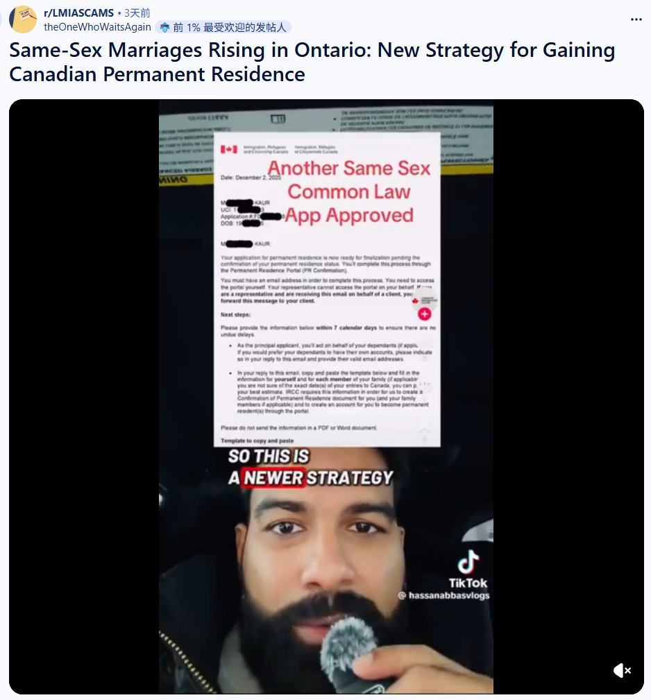 一段在Reddit、TikTok等平台流传的视频内容提到,随着加拿大移民政策持续收紧,一种所谓的“新策略”正在安省悄然兴起——通过申请同性同居(Common-Law)关系来获取加拿大永久居民(PR)身份。