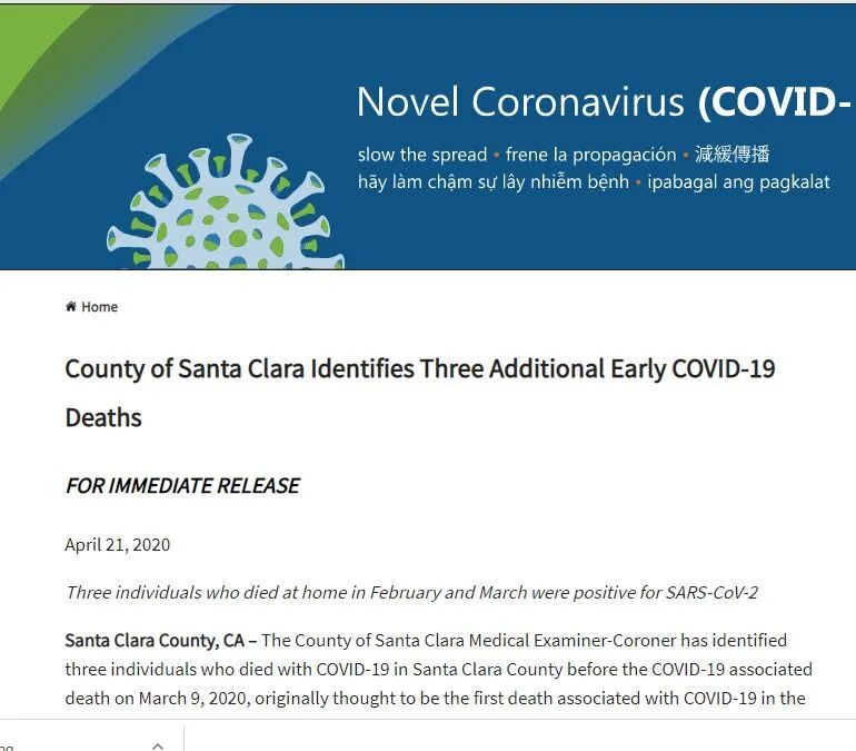 [旧金山湾区新闻]新冠或去年12月已入侵美国!第一例死亡病例是在湾区!