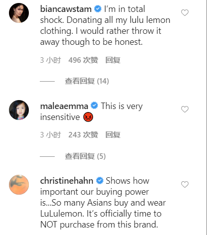 “这显示了我们的购买力有多么重要… 很多亚洲人购买并穿戴lululemon,是时候不买这个牌子了。”