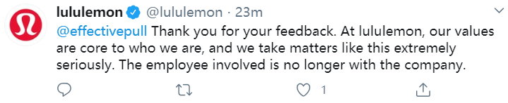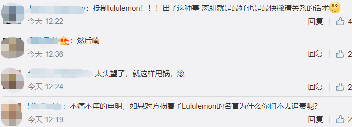 多数网友还抓着品牌方不放的点是,中文版的声明中只点出“非lululemon职员”,而facebook上的回应是“no longer with the company”。