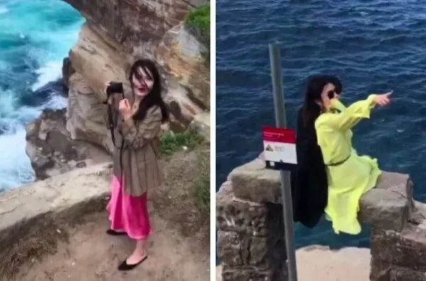 据了解,在上周,仅仅两天时间,就有很多游客无视警告牌,跨过栏杆在悬崖边拍照留念。