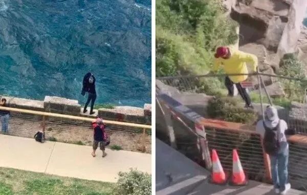 据《每日电讯报》报道,不久前,就有当地网友拍摄到两名疑似华人游客为拍摄完美照片而越过围栏。