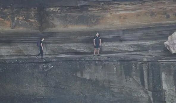 拍摄该视频的居民表示,两个月前,那名27岁的女坠崖者和她们做着类似的事情。