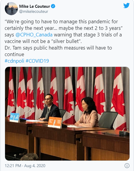 加拿大卫生官警告:有了新冠疫苗也回不到往常