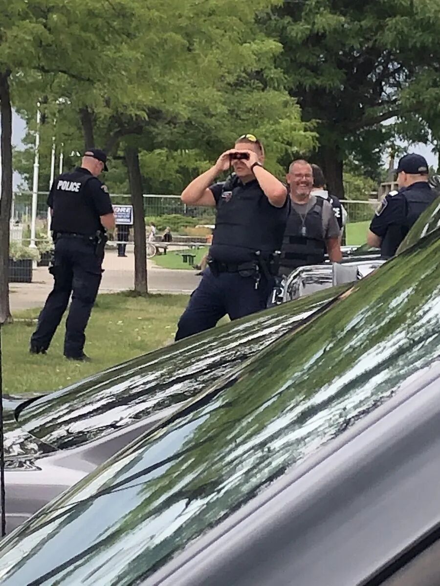 但今天,安省政府早早行动,加拿大海岸警卫队出数十名警员在萨尼亚市的海滨公园严防死守,同时还有一架直升机在上空监控,绝不放过任何一个试图非法上岸的美国人。