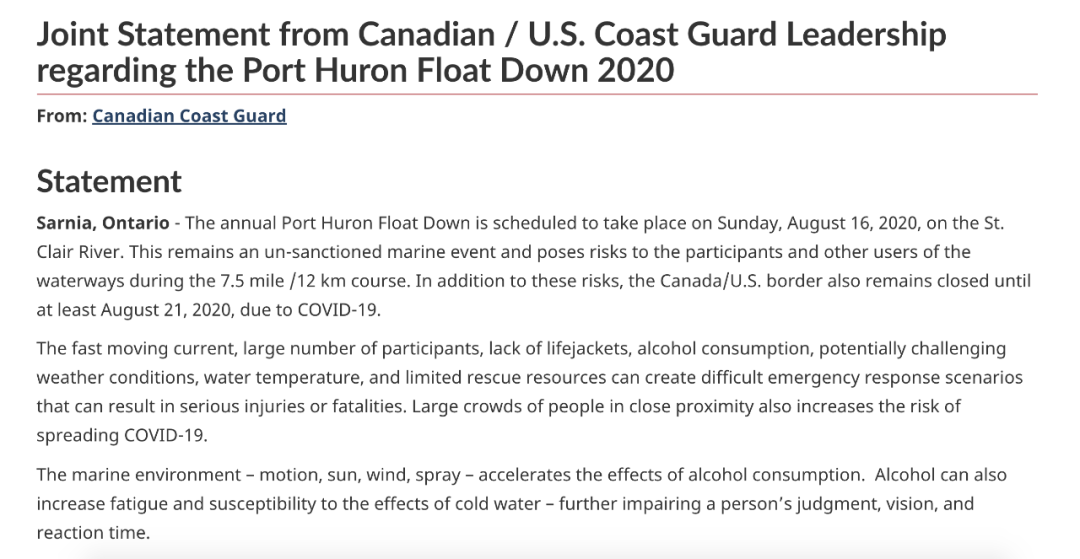 加拿大政府官网和加拿大海岸警卫队(Canadian Coast Guard)都针对此活动发出了警告,强烈建议民众不要参加!