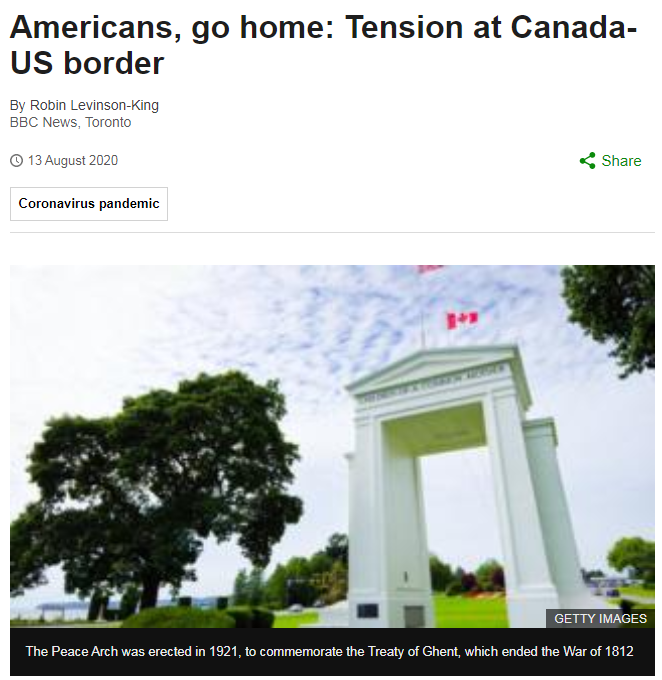 两国人也亲如一国人,但现在形势完全不同了。在加拿大人民眼中,美国人全是传播病毒的隐患。