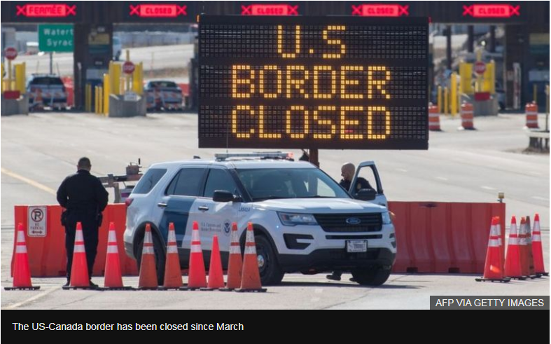 前天(8月14日),加拿大和美国达成协议,将美加边境禁令再延期一个月,至9月21日,期间任何“非必要”旅行都是被禁止的。
