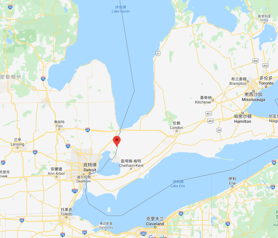 熟悉美加地理环境的小伙伴就能发现,圣克莱尔河(St. Clair River)整条河都是美加边境的一部分,东西两岸分别属于加拿大和美国。