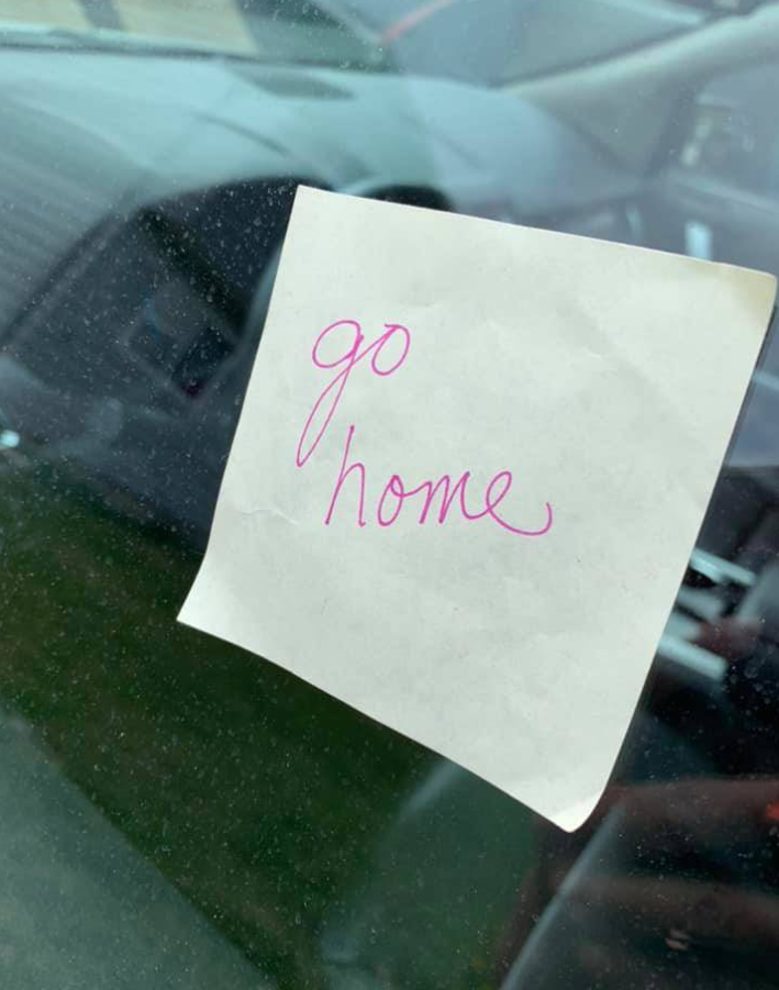 然而虽然无法从脸上分别是加拿大人还是美国人,但美国车牌却很好识别,不少美国人的车子遭到恶意破坏,被贴上“go home”,还被当做‘美国鬼子’(terrible American)。