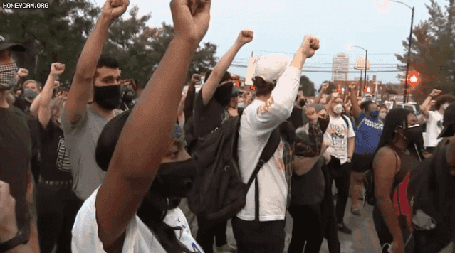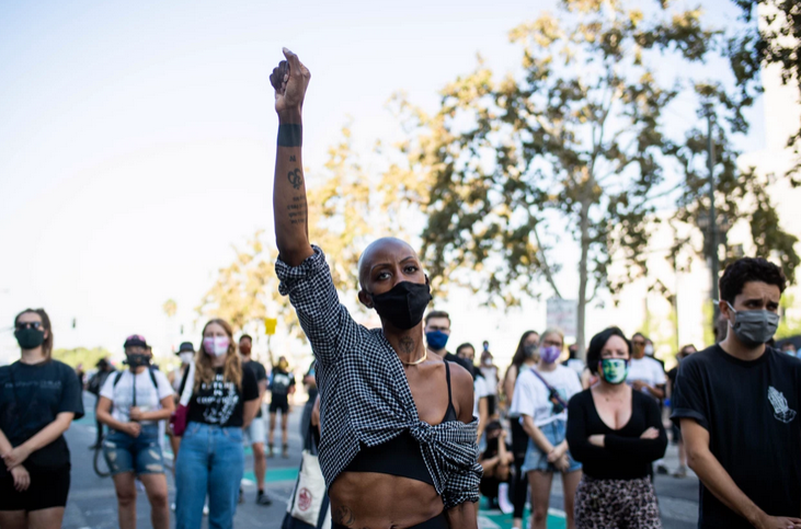 许多人举着支持“黑人的命也是命”的标语,还有人呼吁减少对警察的资助。有人高喊:“停止杀害我们,停止夺走我们的生命,”示威者在“小东京”(Little Tokyo)的餐厅前和平游行,其中一些人高举拳头,声援这场运动。