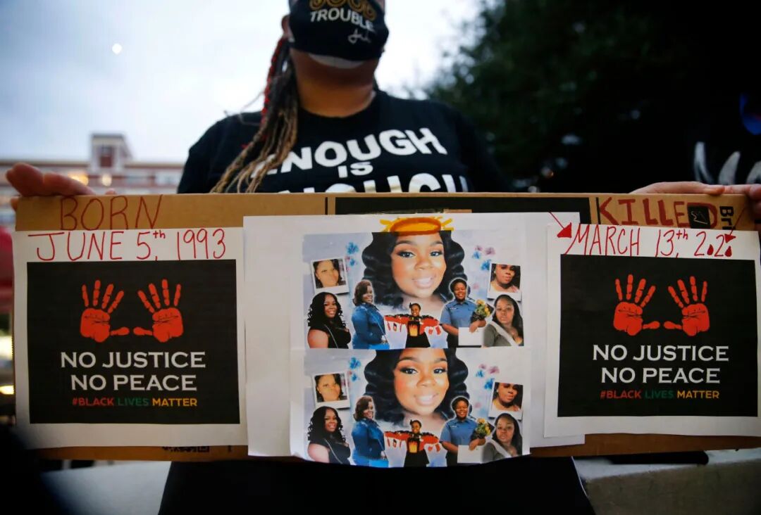 案件事发于2020年3月,警员在进入路易斯维尔一间房屋搜查期间,开枪误杀26岁黑人女性泰勒(Breonna Taylor)。