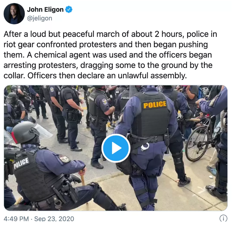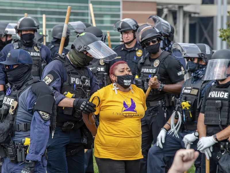 走上街头的示威者大约有200人,他们中的一部分在穿过国会山和市区时砸碎窗户,向建筑物喷漆,同时高呼布伦娜·泰勒的名字,事件很快升级为暴力冲突。警察宣布这次游行为非法集会,并命令人群散开。在混乱中,警方逮捕了13人。