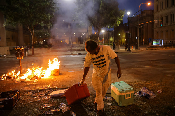 洛杉矶警方表示,有一人被捕是因为用激光指向一架警用直升机,并用致命武器袭击了一名警官。直升机上的一名军官因视力问题被送往地区医院。然而,绝大多数人主张和平抗议。一名示威者说:“我们必须让人们回到街上抗议,黑人仍在死亡,情况并没有好转。”