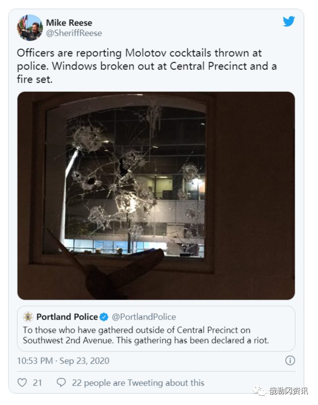 9月23日晚上至24日凌晨,俄勒冈州波特兰市警方在波特兰市中心的一次集会被宣布骚乱,逮捕了13人。