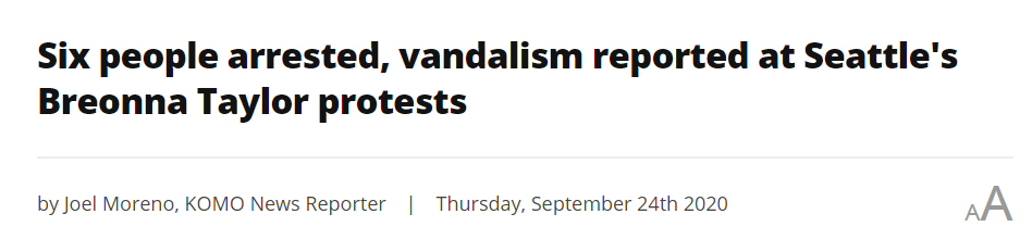 当晚,西雅图多个抗议团体出动,部分示威者在斯图尔特街(Stewart )联邦法院外举行烛光活动,全程保持和平;另一群人走上街头,与警察发生了暴力冲突。