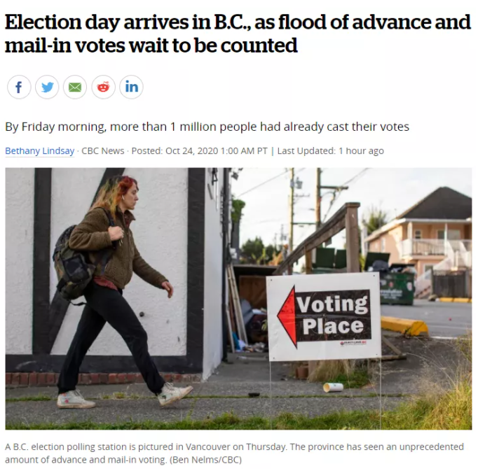 BC省选举委员会预计,今年省选是BC省选举历史上第一次出现“选举日”之前投票人数超过“选举日”当天的投票人数。