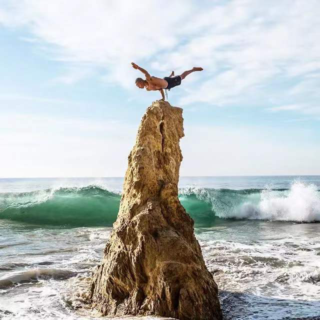 也喜欢在危险的地方,挑战瑜伽高难度体式