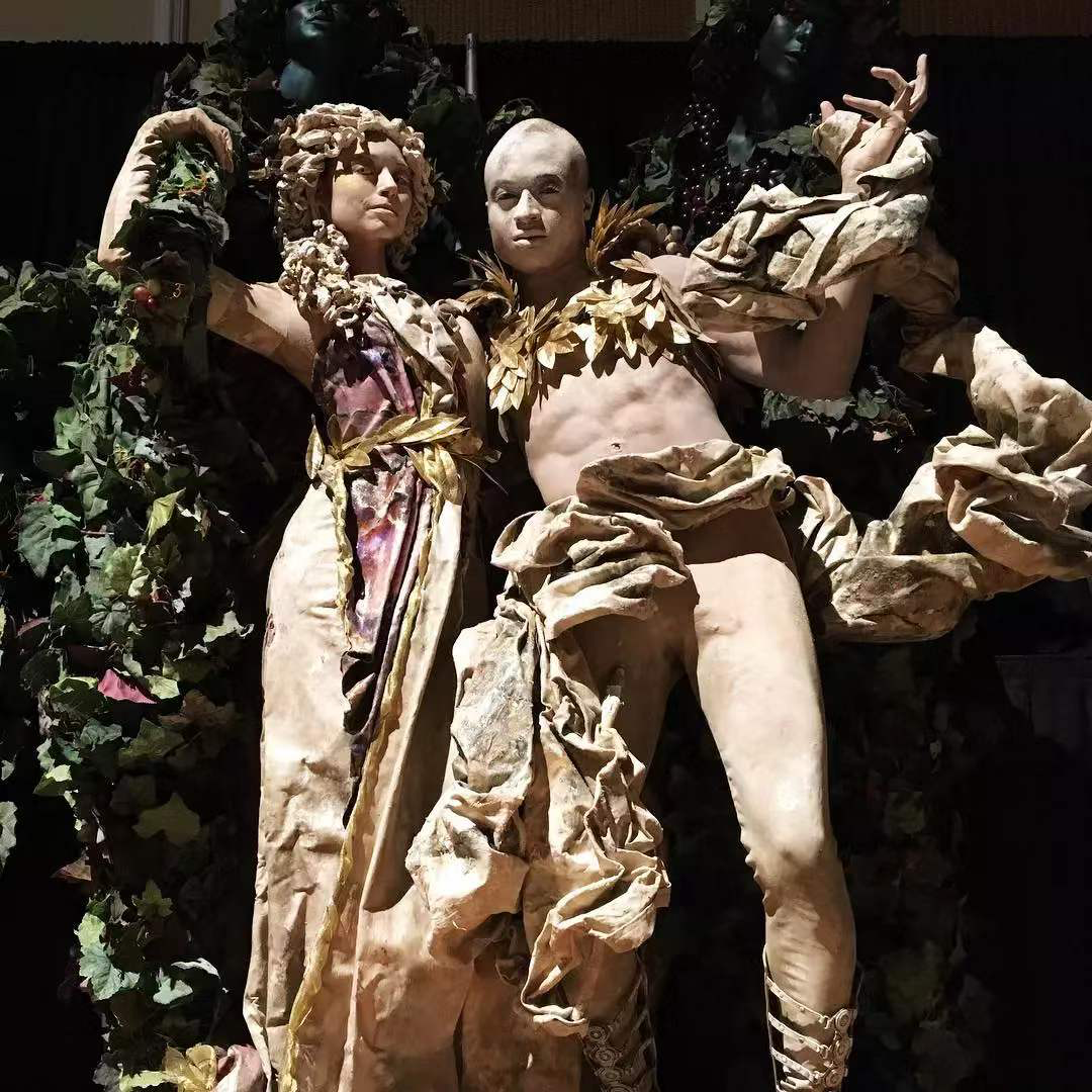 Andrew扮成雕塑的样子根本真假难辨