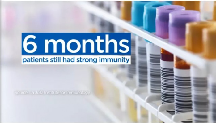 研究人员发现,大多人对新冠病毒的免疫记忆力长达6个月或更长时间,而且短期内的免疫细胞减少速度较为缓慢。