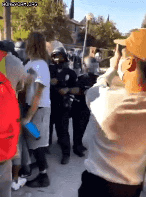 洛杉矶警察局官员梅丽莎·波德尼(Melissa Podany)表示,当天上午10:30左右,当时警察正处于“人群管理模式”,有人开始在距居民区500英尺的范围内使用扩音器,噪音引发了居民的投诉,而市政规定禁止这样的行为。